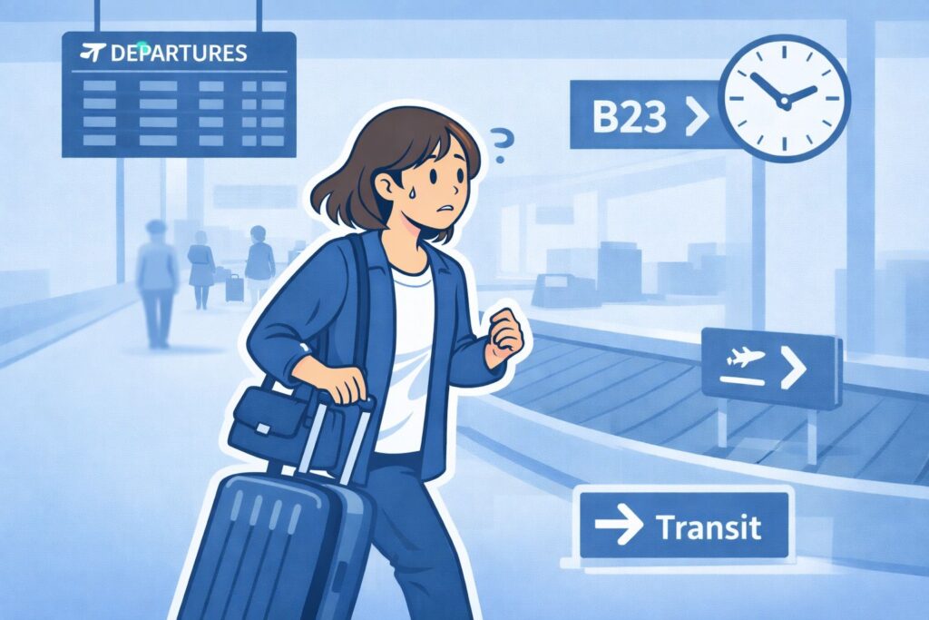 海外の空港でトラブルが起きたとき、一番の敵は 「焦り」 です。出国審査が進まない、搭乗時間が迫っている、周囲もザワザワしている——こうした状況では、誰でも冷静さを失いがちです。