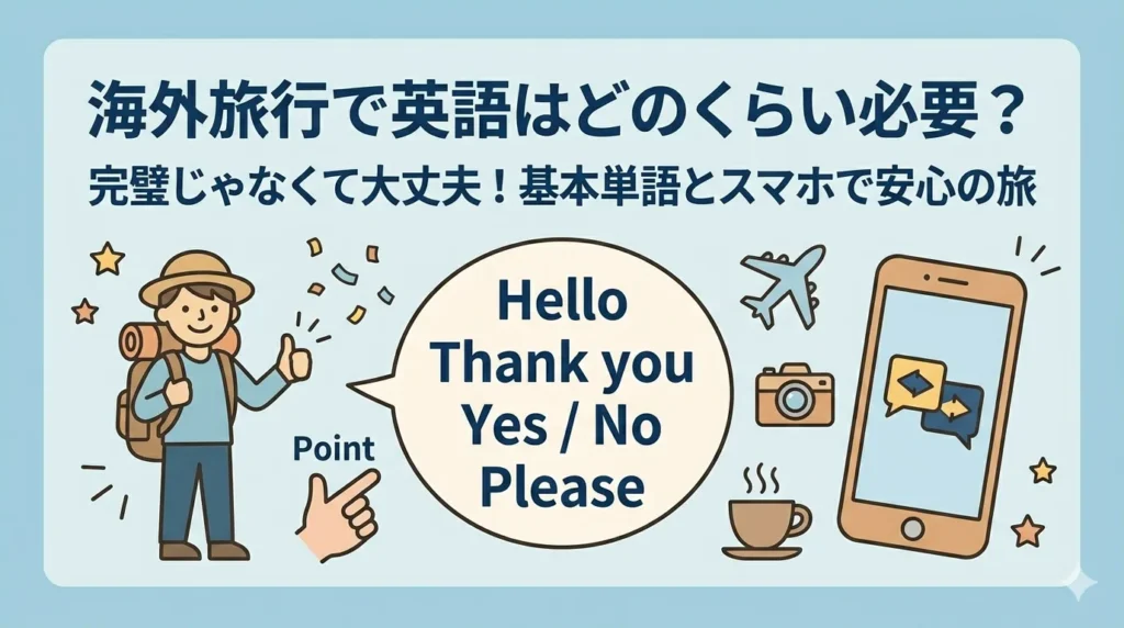 実は、海外旅行で必要な英語はとてもシンプルです。難しい文法も、流暢な発音も必要ありません。よく使うフレーズをいくつか知っておくだけで、ほとんどの場面は乗り切れます。