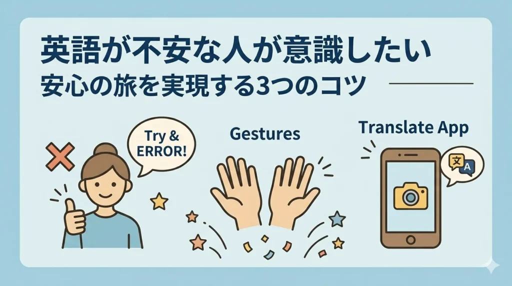 「どうしても英語が苦手…」「本当に伝わるか不安…」という方は、次の3つのことを意識してください。